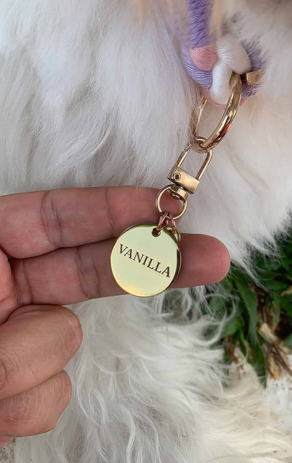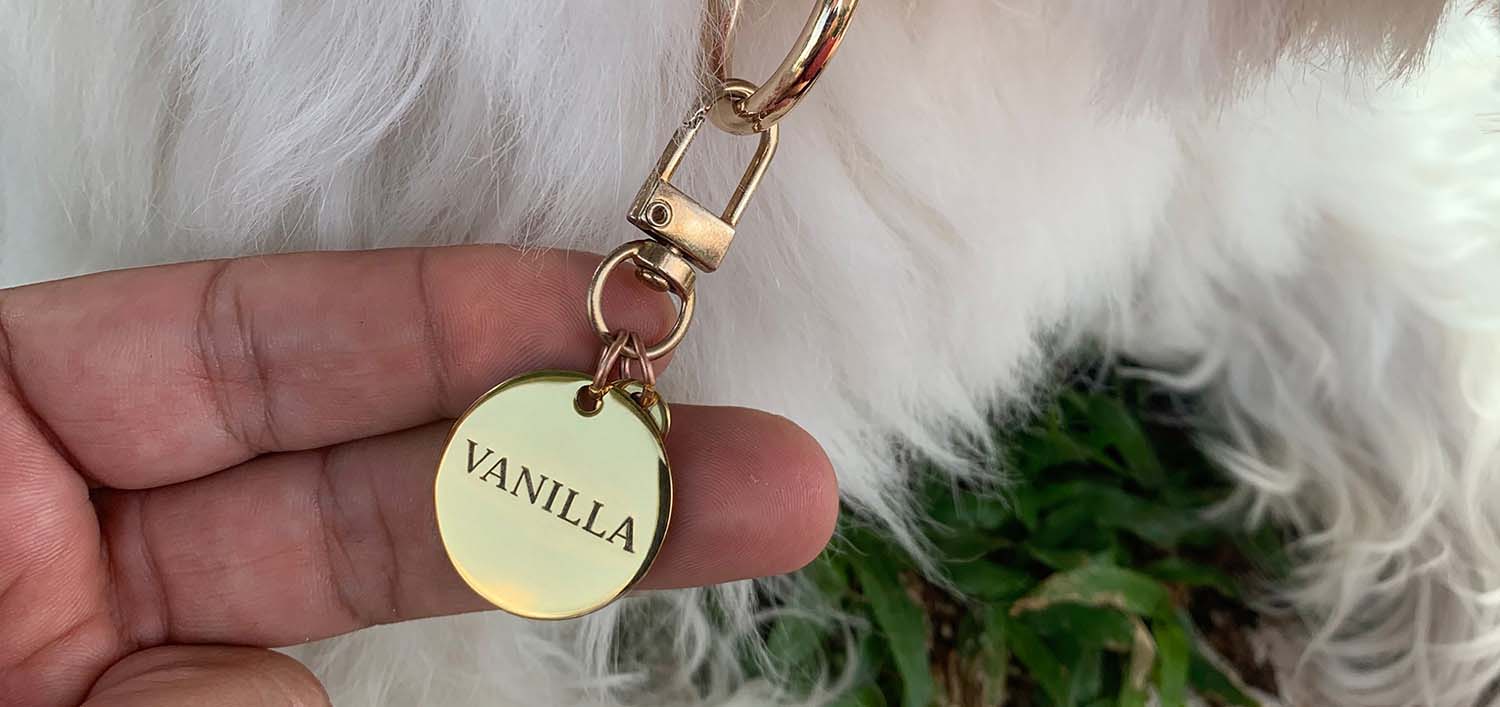 Todos os produtos Nomii acompanham tag personalizada inoxidável, para facilitar a identificação e aumentar a segurança no passeio.